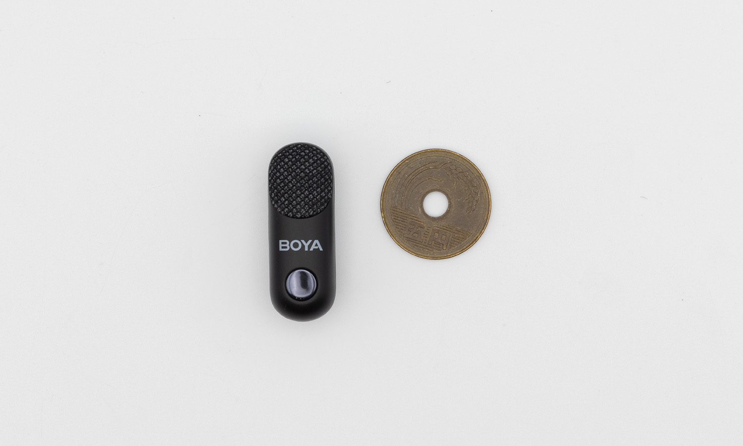 BOYA Magicのマイクはとにかく小さい。硬貨と並べてもほとんど大きさは変わらない。